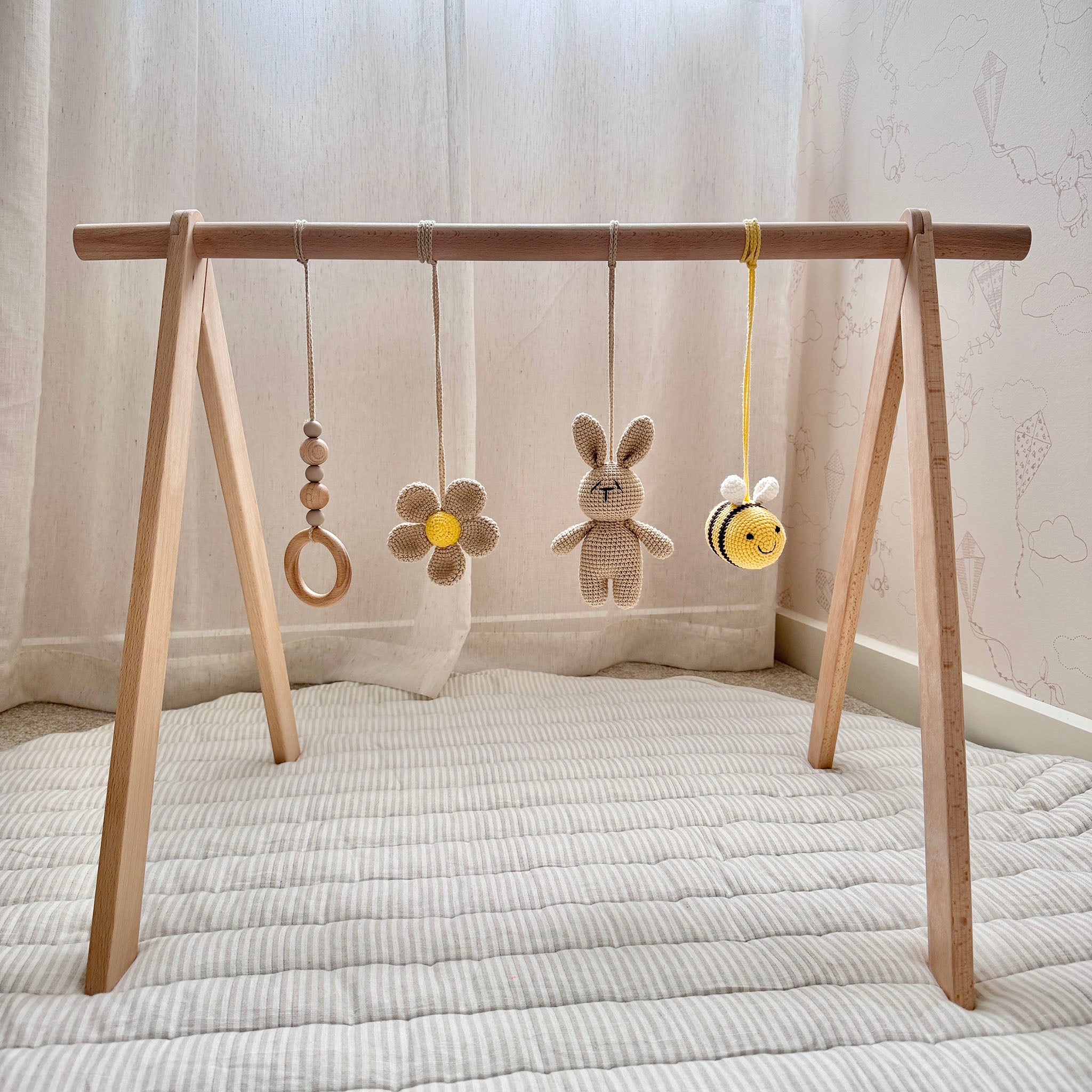 A nursery favourite, loved for its calm and modern aesthetic. Hand-crocheted bunny and bee toys come with soothing rattles inside, offering gentle sounds that encourage sensory development. Each piece is made from non-toxic materials, safe for little hands and mouths, in a neutral beige palette lifted with playful pops of yellow to brighten any space.