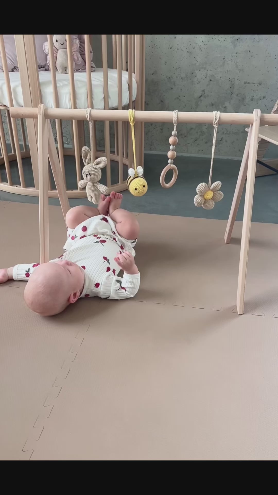 Never allow your little one to play with unhung toys, and please note that these items are not designed as teething toys or for any purpose other than as part of the baby gym.