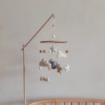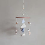 Ignite your baby's imagination with our hand made mobile featuring an adorable elephant, fluffy clouds, and twinkling stars. Hang it above their crib or changing table, fostering a serene ambiance that invites moments of wonder and calm.